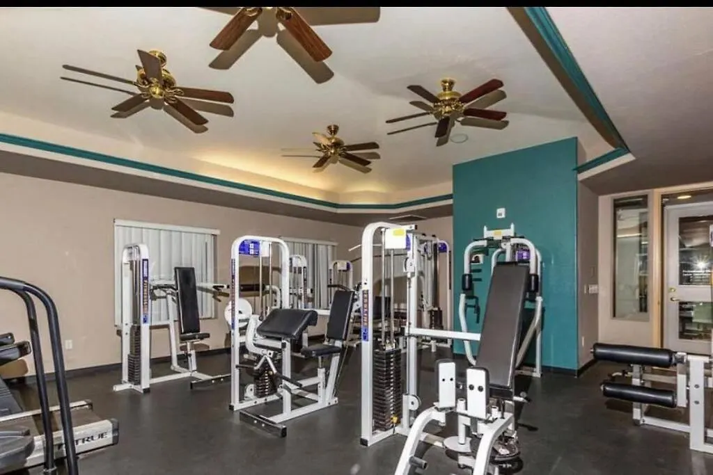 Con una cocina como parte de sus instalaciones de autoservicio, el apartamento también ofrece a sus huéspedes un comedor al aire libre para disfrutar de sus comidas. Además, este establecimiento está equipado con servicio de tetera/cafetera. En el restaurante Panda Express, que se encuentra a alrededor de 3 km, se sirve comida china. La inclusión de un jacuzzi, una sauna y una piscina exterior garantiza una estancia más agradable. Gracias al acceso a clases de fitness, los huéspedes pueden diversificar su tiempo libre.